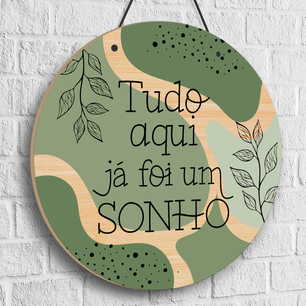 Receba seus convidados com estilo e uma mensagem inspiradora com nossa Placa Decorativa para Porta de Entrada com a frase 'Tudo aqui já foi um sonho'. Com um design elegante e a frase cativante, transforme a sua entrada em um lugar acolhedor e cheio de significado. Faça uma declaração de boas-vindas com esta placa!